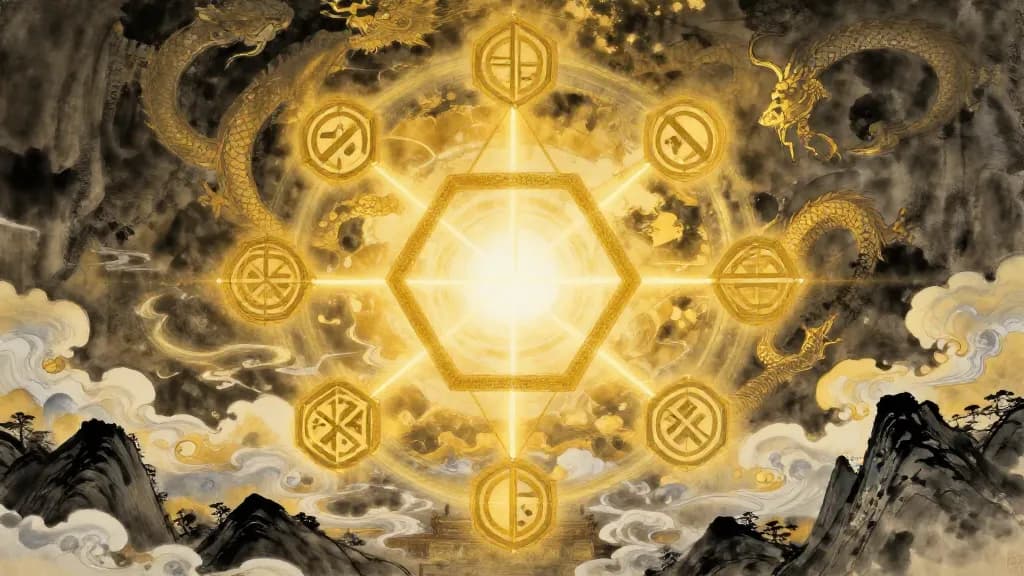 The Eight Palaces (八宮, bā gōng) system organizes all 64 hexagrams into eight families of eight, each governed by a parent hexagram built from a single doubled trigram. This arrangement, attributed to the Han dynasty scholar Jing Fang (京房), reveals something the standard King Wen sequence obscures: the structural relationships between hexagrams as a trigram gradually transforms, line by line, from the parent figure.