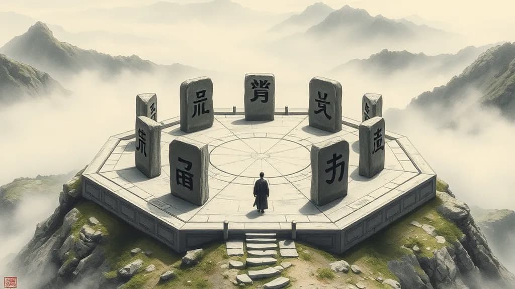 In the Later Heaven sequence, Zhen (Thunder) occupies the east and spring — the beginning, the stirring. Li (Fire) occupies the south and summer — full illumination. Dui (Lake) occupies the west and autumn — harvest and joy. Kan (Water) occupies the north and winter — toil, endurance, the dark period before renewal. The text even notes that “the sage faces south to give audience to all under Heaven, turns toward the light to govern” — a passage that influenced the literal orientation of Chinese imperial thrones for two millennia.
